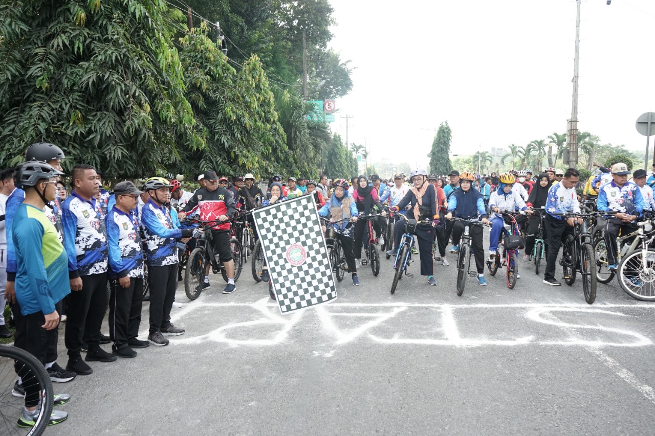 MAWARTANEWS – Bupati Asahan H. Surya dan Unsur Forkopimda Kabupaten Asahan melepas lebih kurang 1.500 peserta gowes bersama guru Asahan dalam rangka HUT ke-77 PGRI. Pelepasan gowes ini dilakukan di Depan Rumah Dinas Bupati Asahan, Minggu (04/12/2022).