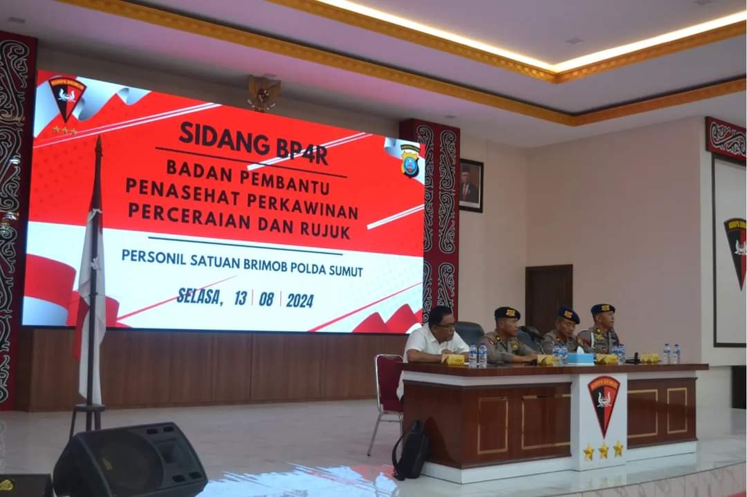 MEDAN – Sebanyak delapan pasangan calon istri dari anggota Brimob Polda Sumatera Utara menjalani sidang Badan Pembantu Penasehat Perkawinan Perceraian dan Rujuk (BP4R) di Auditorium Dhira Brata, Mako Satbrimob Polda Sumut.