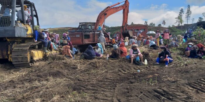 Namun pagi tadi Kamis 28/07/2022 sempat diberhentikan oleh Emak – Emak Desa Pertibi Kec Merek Kab Karo dan mereka mengatakan di dalam spanduknya yang bertuliskan ” Jokowi tanah kami di ambil , Pak Jokowi kami tidak bisa beli susu anak kami, Kami tidak makan, tanaman kami dirusak makan apa kami, tolong kami Pak Jokowi, Tolong kami Pak Jokowi!.