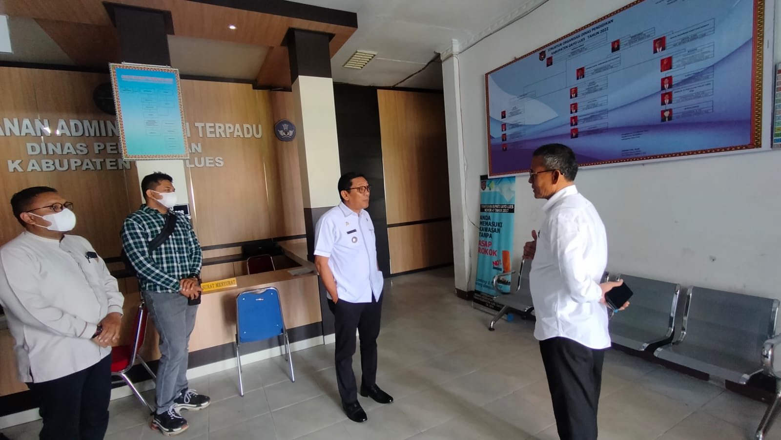 Kehadiran Pj. Bupati Alhudri berserta para ajudannya diterima langsung oleh kepala Dinas Pendidikan Gayo Lues Anuar S.Pd. pada kesempatan tersebut Alhudri memantau setiap ruangan serta melepaskan berbagai pertanyaan tentang persoalan yang sedang dihadapi oleh Dinas Pendidikan serta memberikan berbagai intruksi kepada kepala Dinas Pendidikan.