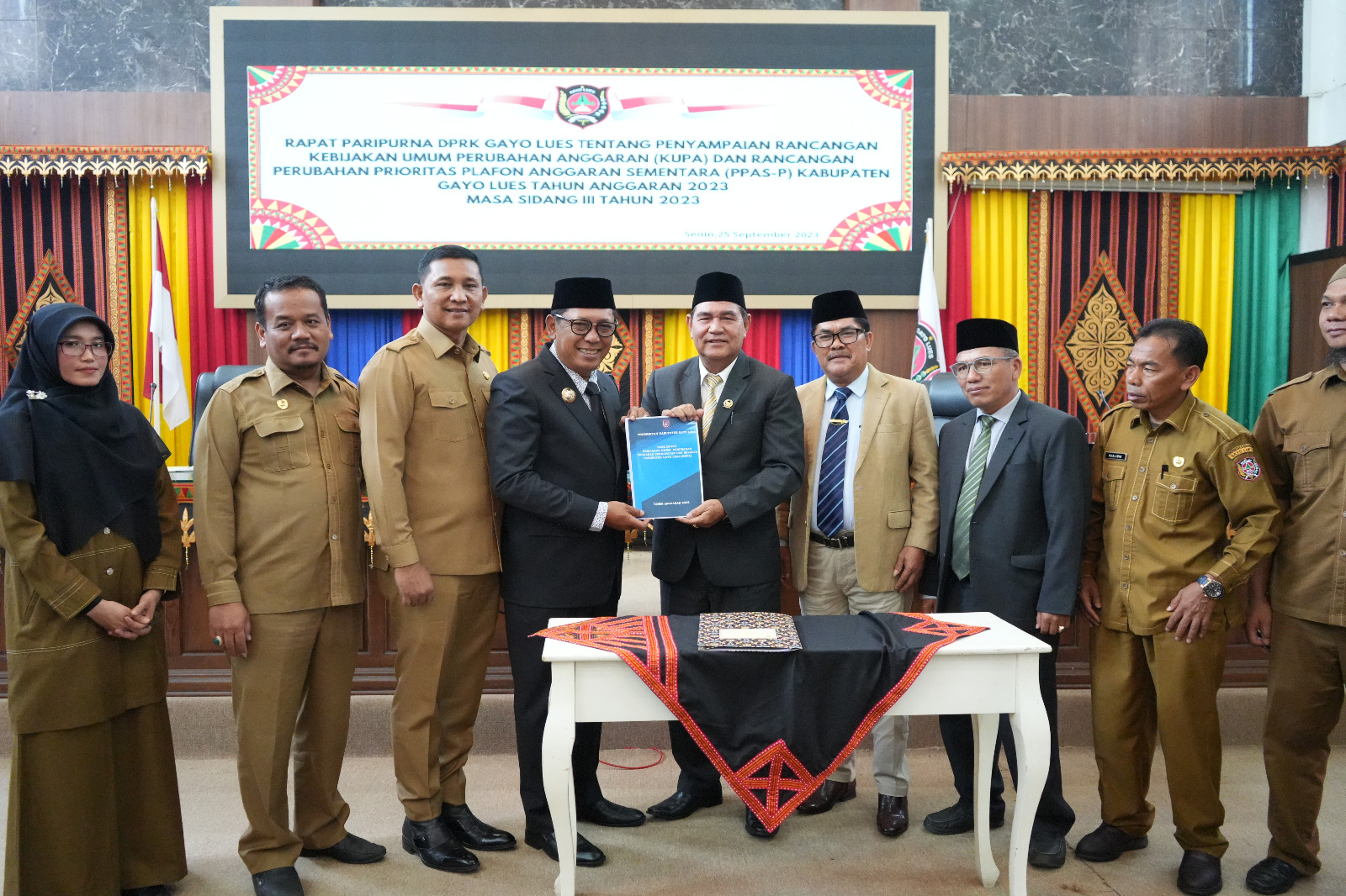“Penyerahan yang di saskikan oleh segenap anggota DPRK dan Kepala SKPK se Kabupaten Gayo Lue tersebut di laksanakan di Gedung DPRK Gayo Lues”.