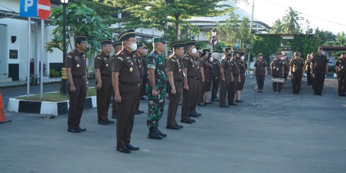 Apel pagi diikuti Wakajati Sumut Asnawi, SH,MH para Asisten, Kabag TU, Koordinator, para Kasi, pegawai, cleaning service dan security.