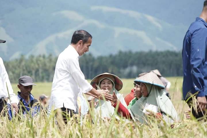 Presiden Joko Widodo menyampaikan kebahagiannya melihat hasil panen yang luar biasa di Desa Pandere, Kabupaten Sigi, yang mencapai 6-6,2 ton per hektare.