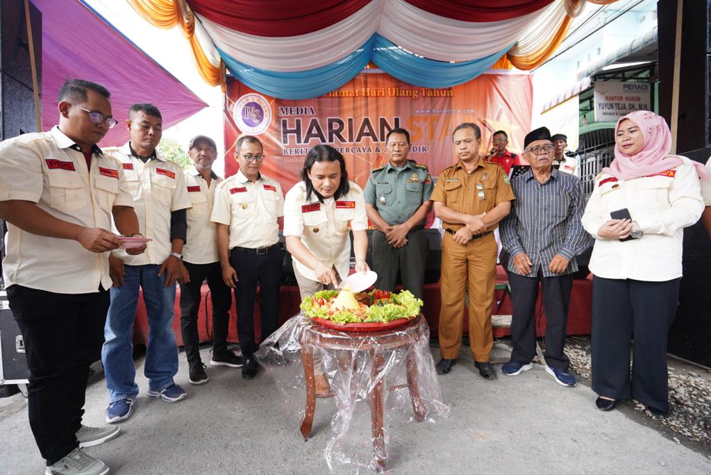 Media online Harianstar.com melakukan syukurannya yang ke-1 sekaligus memasuki kantor baru di Jalan Pancasila, Kecamatan Medan Denai, Selasa (28/11/2023), ditandai dengan pemotongan nasi tumpeng dan pemberian tali asih kepada puluhan anak yatim dan hiburan.