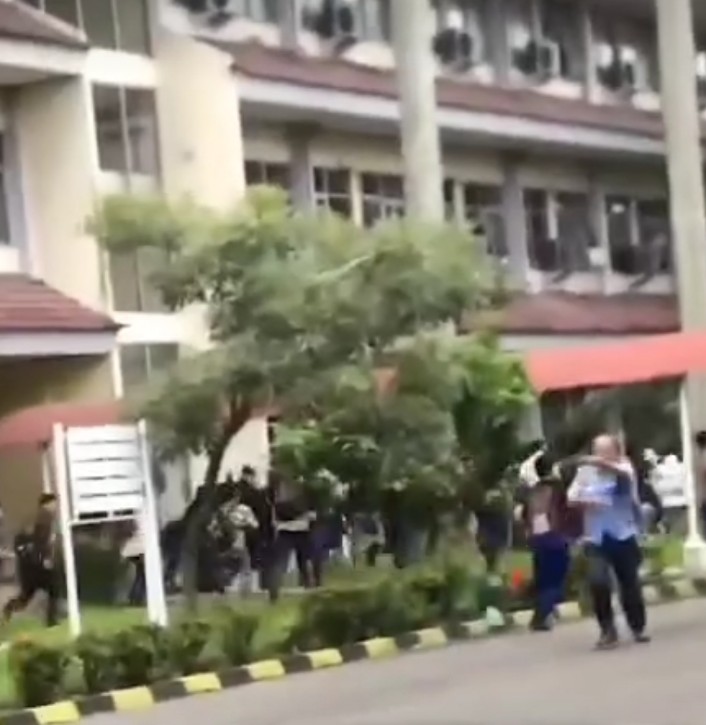 Belum diketahui penyebab insiden itu terjadi. Informasi diperoleh sejumlah mahasiswa terkena luka bacok dalam insiden tersebut.