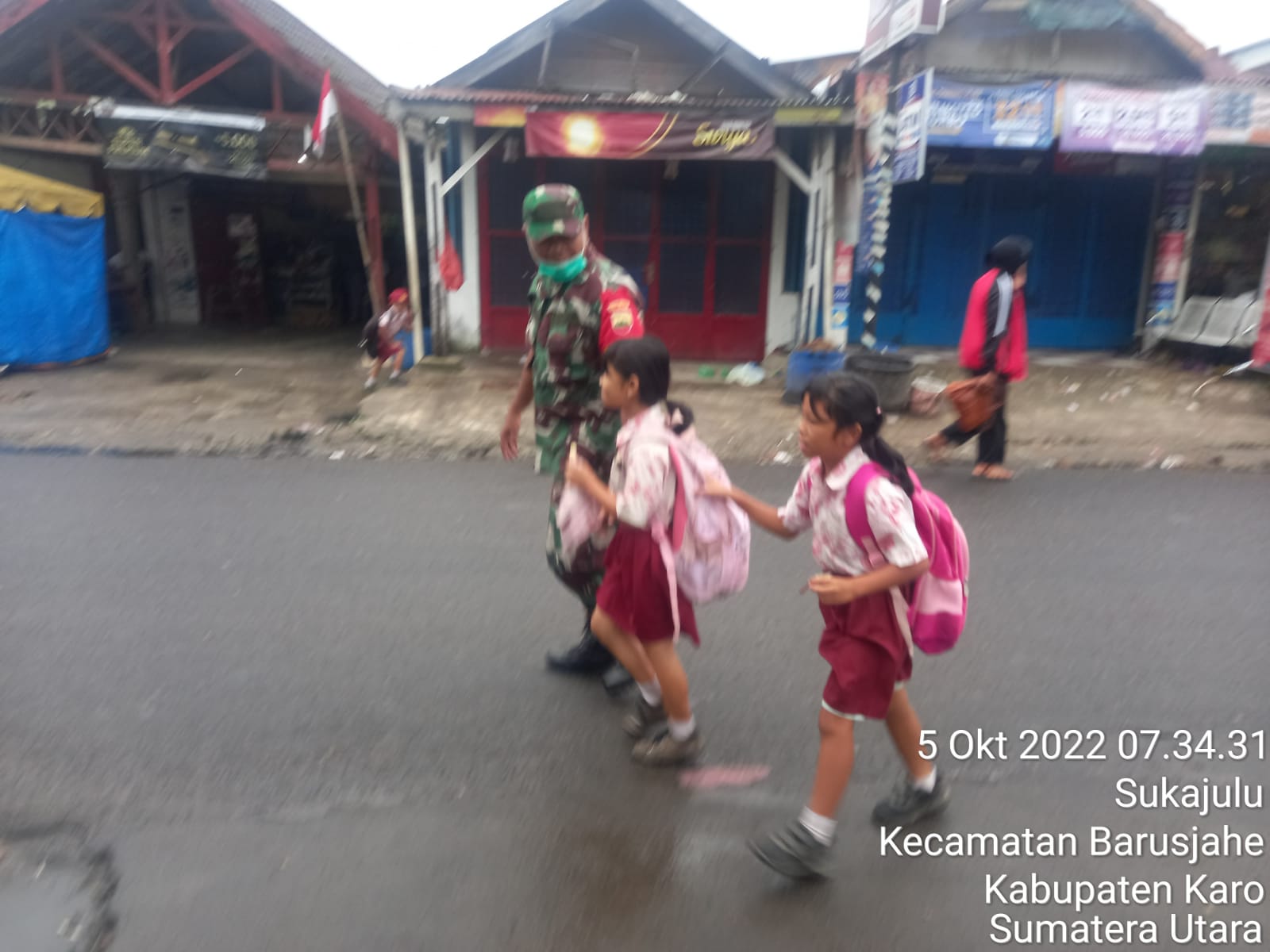MAWARTANEWS.com, KARO – Memberikan rasa aman dan nyaman kepada seluruh lapisan masyarakat merupakan tanggung jawab Babinsa di wilayah binaan, salah satu kepedulian yang dilakukan oleh Babinsa Koramil 01/BJ Kodim 0205/TK Serma M Harianja , yakni membantu murid SD menyeberang jalan menuju ke sekolah di SDN Dusun Tiga Jumpa Kecamatan Barusjahe Kabupaten Karo pada hari Rabu 05/10/2022.