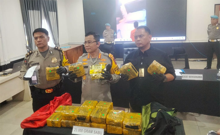 “Barang bukti yang berhasil diamankan berupa 24 bungkus teh Cina berat 23,800 gram sabu atau hampir 24 kilogram, ditambah sebuah mobil Avanza BK 1127 PV,” jelas Kapolrestabes Medan.