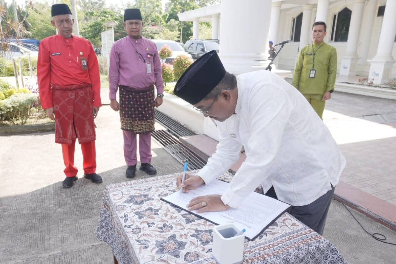 MAWARTA – Bupati Tanjung Jabung Barat, Drs. H. Anwar Sadat, M.Ag, secara resmi mengukuhkan Pegawai Negeri Sipil (PNS), Pegawai Pemerintah dengan Perjanjian Kerja (PPPK), serta PPPK Paruh Waktu dalam jabatan manajerial dan nonmanajerial di lingkungan Pemerintah Kabupaten Tanjung Jabung Barat, Rabu (7/1).