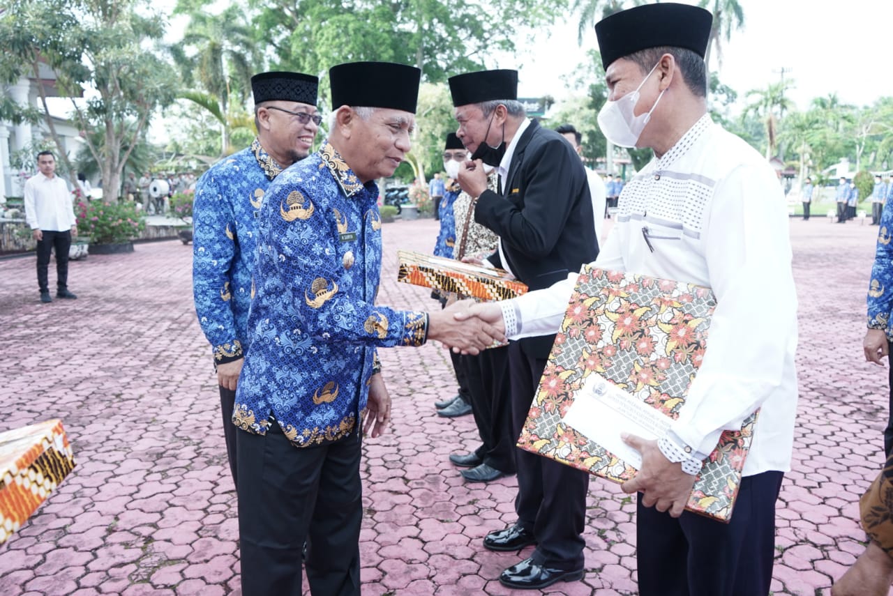 Sebelum memulai pidatonya Bupati Asahan menyerahkan penali kasih Kepada ASN yang memasuki masa Pensiun Tahun 2021 & Tahun 2022 di Halaman Kantor Bupati Asahan, antara lain Suprapto, SH (Dinas PPKB, PP dan PA Kabupaten Asahan), Drs. Nirwan (Dinas Komunikasi dan Informatika Kabupaten Asahan) Zulkifli (Dinas Koperasi dan Perdagangan Kabupaten Asahan),