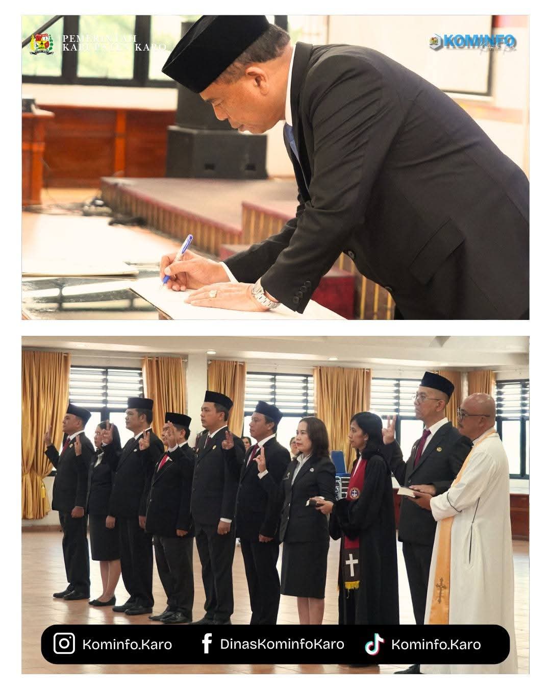 “maka saudara-saudari yang dilantik hari ini diharapkan menjadi pemimpin perubahan, motor penggerak birokrasi, serta teladan dalam integritas, etika jabatan, dan kinerja organisasi.” tegas Bupati Karo.