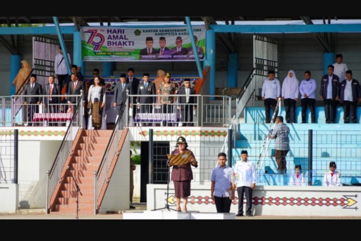 KARO – Bupati Karo, Cory Sriwaty Sebayang pimpin upacara Hari Amal Bakti Ke-79 yang berlangsung di Lapangan Samura Kabanjahe, Jumat (03/01/2025).