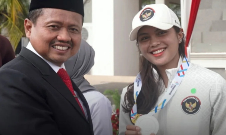 Sumedang (MAWARTA) – Bupati Sumedang, Dony Ahmad Munir menyampaikan selamat kepada Riska Amelia Agustina atas prestasi yang diraih, yakni penyumbang mendali perak MTB Women Downhill Individual pada Sea Games Thailand 2025.