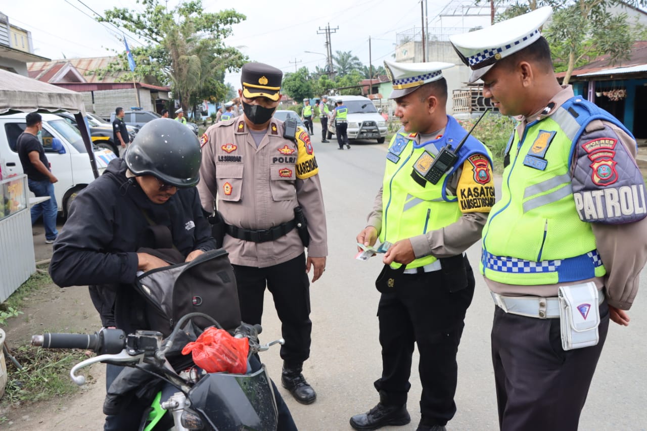 Polres Sergai bersama Polsek Dolok Masihul gelar razia di simpang tiga Desa Kuala Bali Kecamatan Serba Jadi, Selasa (24/10/2023) Pukul 14.00 WIB.
