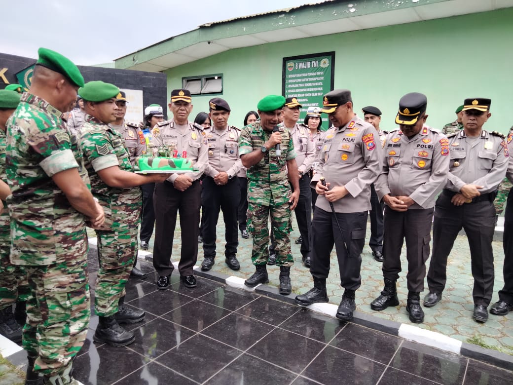 MAWARTANEWS.com, KARO [ Keharmonisan TNI Polri di Kabupaten Karo tidak diragukan lagi, tepat di Hari Ulang Tahun TNI ke-78 tahun 2023, Kapolres Tanah Karo AKBP Wahyudi Rahman bersama jajaran memberikan surprise kepada Anggota Kodim 0205/TK di Makodim Jalan Jamin Ginting Desa Raya Kecamatan Berastagi Kabupaten Karo pada hari Kamis 5/10/2023.