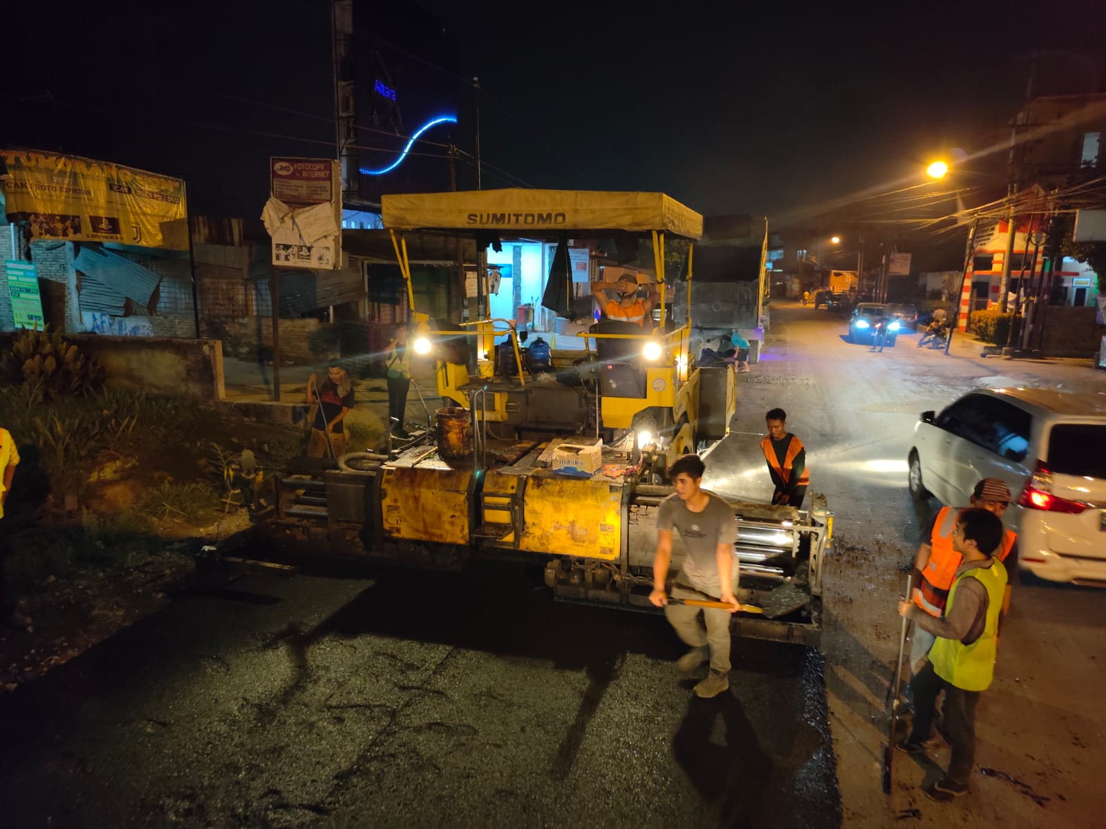 Dari pantauan dilapangan terlihat puluhan petugas dengan dibantu alat berat diturunkan untuk mempercepat proses pengaspalan.