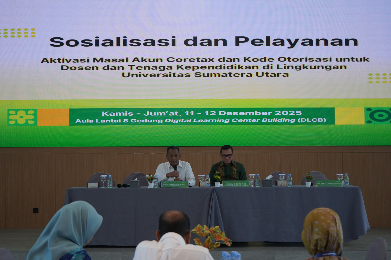 Medan (MAWARTA) — Kantor Wilayah Direktorat Jenderal Pajak (DJP) Sumatera Utara I bersama Universitas Sumatera Utara (USU) menggelar kegiatan sosialisasi dan asistensi aktivasi akun Coretax bagi sivitas akademika.