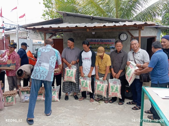 Penyerahan bantuan berlangsung di Sekretariat FORSEBA, Jalan A. Sani Muthalib, Kelurahan Terjun, Kecamatan Medan Marelan, Minggu (14/12/2025).