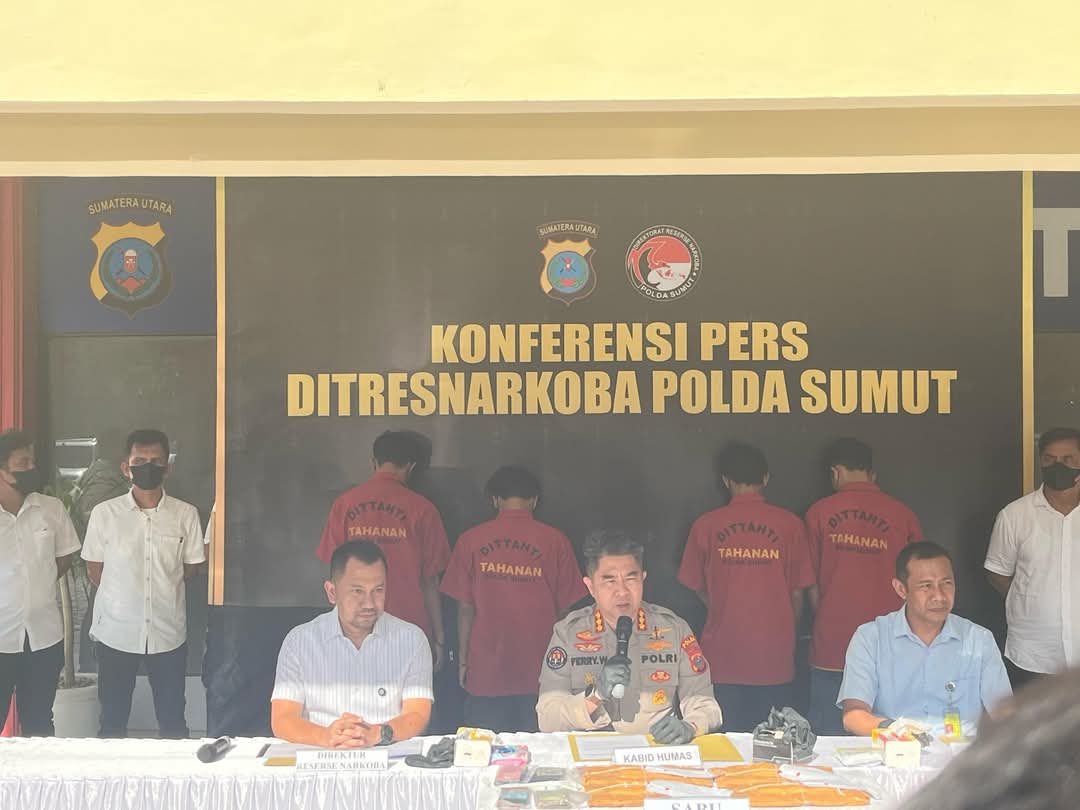 MEDAN – Direktorat Reserse Narkoba Polda Sumatera Utara bekerja sama dengan petugas Aviation Security (Avsec) Bandara Internasional Kualanamu berhasil menggagalkan penyelundupan narkotika jenis sabu seberat 5 kilogram yang dibawa oleh empat orang tersangka dengan modus body wrapping, Selasa malam, 15 April 2025.