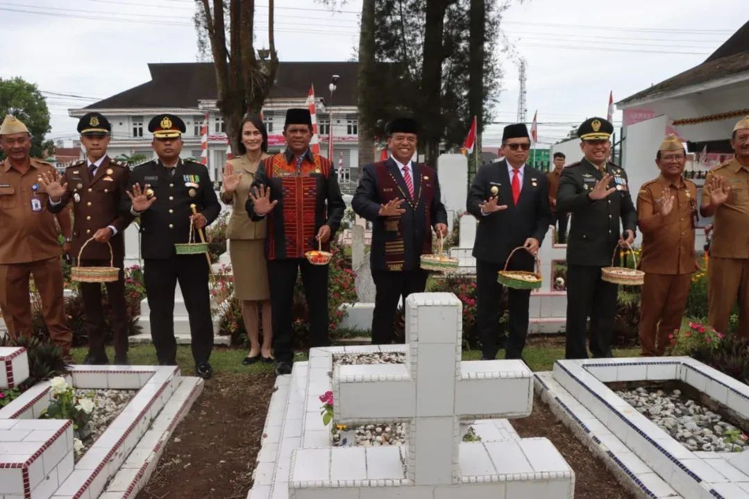 Kabanjahe – Bupati Karo, Brigjen Pol (Purn) Dr. dr. Antonius Ginting, Sp.OG., M.Kes., bersama Wakil Bupati Karo, Komando Tarigan, S.P., menghadiri upacara ziarah di Makam Pahlawan Kabanjahe dalam rangka memperingati Hari Veteran Nasional Tahun 2025, Senin (11/8/2025).