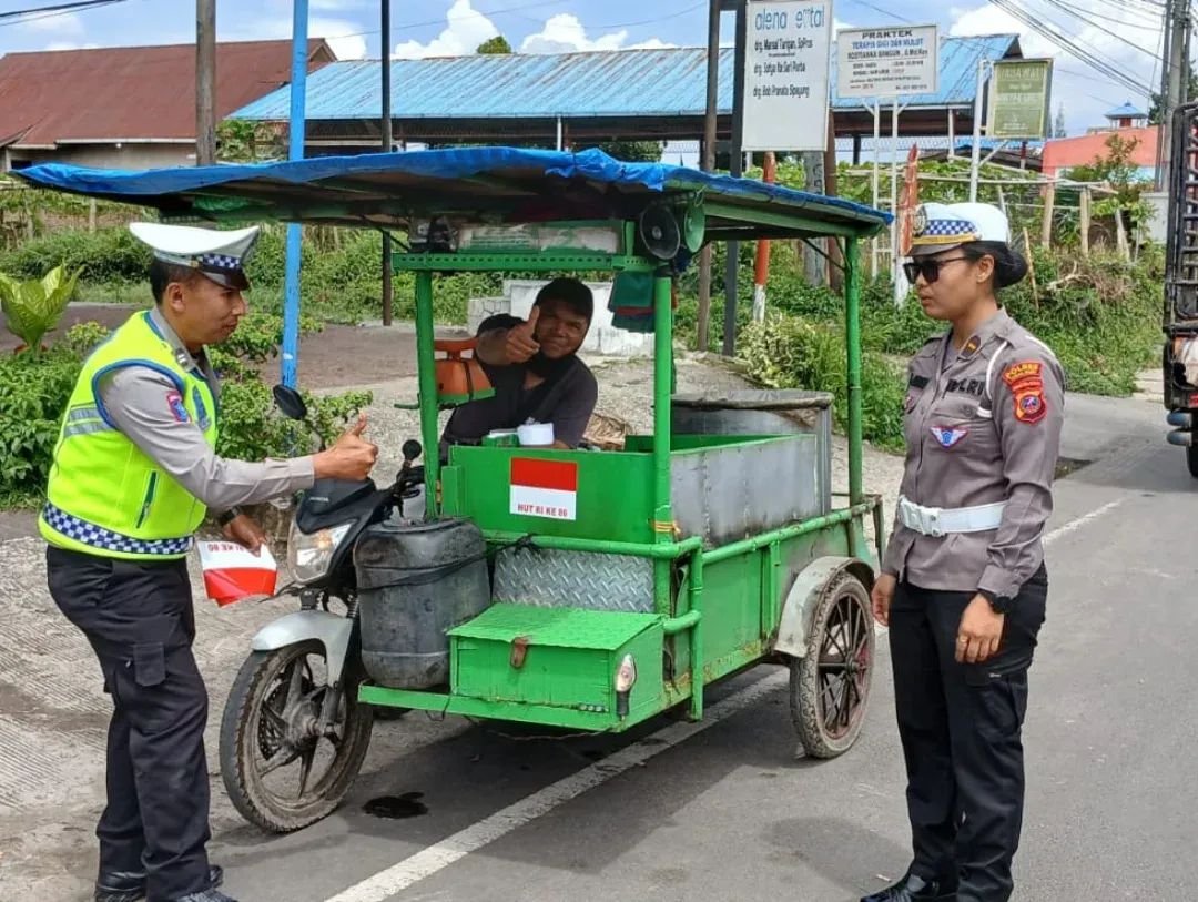 KARO – Dalam rangka menyambut Hari Ulang Tahun (HUT) Kemerdekaan Republik Indonesia ke-80, Satuan Lalu Lintas (Satlantas) Polres Tanah Karo mengimbau seluruh pengendara untuk memasang dan mengibarkan Bendera Merah Putih di kendaraan bermotor mereka.