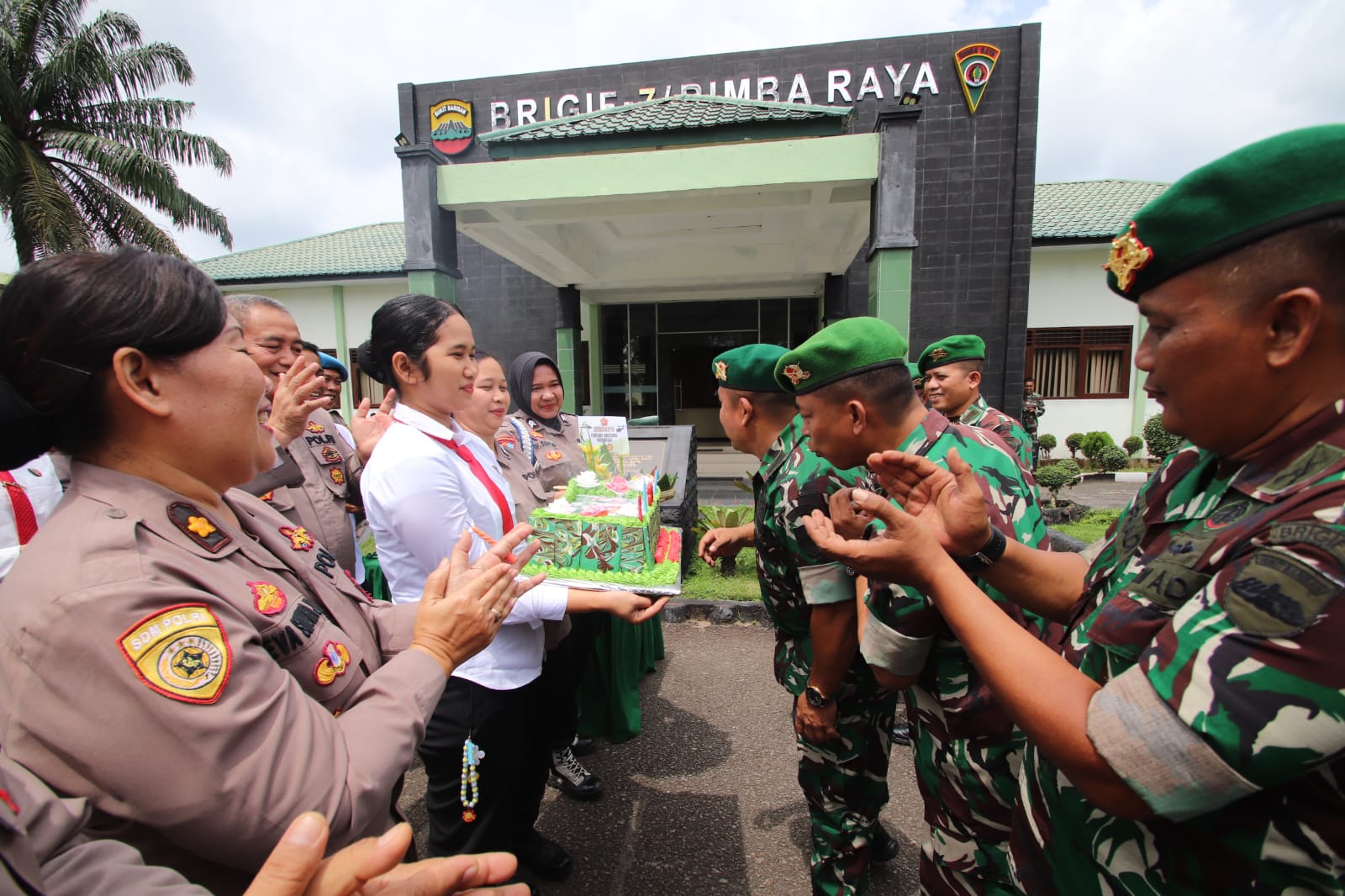 Pada kesempatan tersebut, rombongan Polres Sergai menyerahkan tumpeng sebagai bentuk penghormatan sekaligus ucapan selamat ulang tahun kepada jajaran TNI.