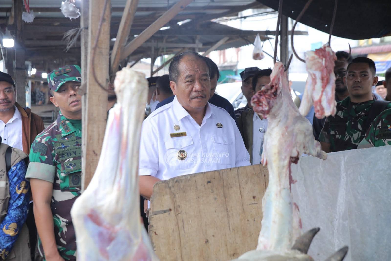 Asahan (MAWARTA) — Menjelang perayaan Natal dan Tahun Baru (Nataru) 2025, Bupati Asahan Taufik Zainal Abidin bersama Forum Koordinasi Pimpinan Daerah (Forkopimda) dan Tim Pengendalian Inflasi Daerah (TPID) Kabupaten Asahan, melaksanakan inspeksi mendadak (sidak) ke Pasar Simpang Empat, Kecamatan Simpang Empat, Rabu (17/12/2025).
