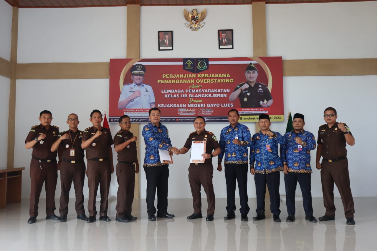 MAWARTANEWS.COM (Gayo Lues) -Kejari Gayo Lues dan lakukan Penandatanganan Kesepakatan Bersama Memorandum Of Understanding (MoU) antara Lembaga Pemasyarakatan Kelas IIB, Blangkejeren dengan Kejaksaan Negeri Gayo Lues Tentang Penanganan Overstaying pada tanggal 22 Mei 2023 kemaren sekira pukul 11:00 WIB,bertempat di Aula Kejaksaan Negeri Gayo Lues.