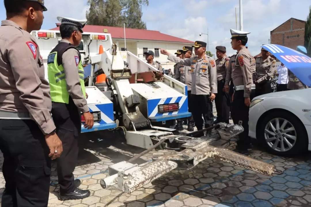 Pemeriksaan satu persatu dilakukan Kapolres AKBP Wahyudi Rahman yang bertujuan untuk mengetahui kondisi fisik kendaraan, baik roda dua, maupun roda empat harus dicek secara periodik.