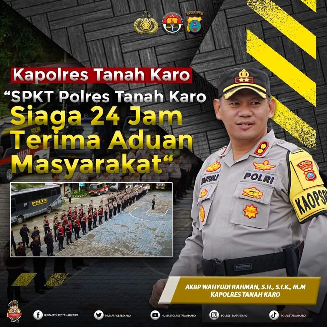 Tidak hanya di Polres Tanah Karo, lanjut Kapolres, instruksi tersebut juga berlaku di Polsek jajaran. Mantan Kapolres Dairi itu meminta agar SPKT Polres Tanah Karo dan Polsek jajaran supaya tetap melayani aduan dari masyarakat selama 24 jam.