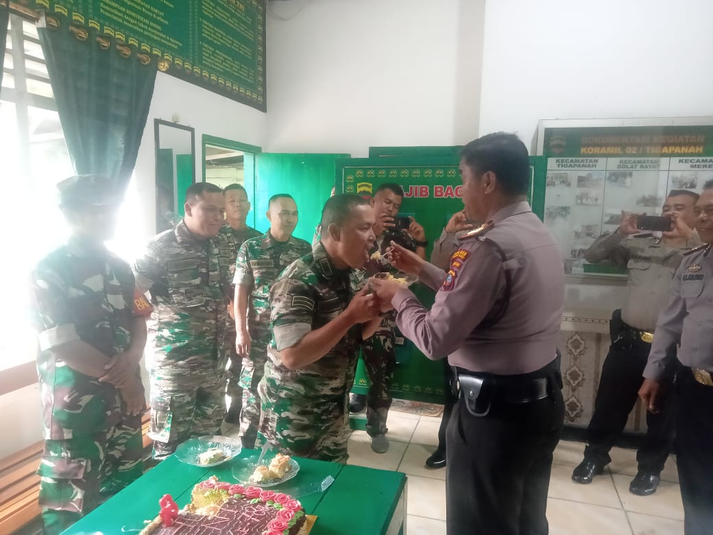 Kapolsek Tigapanah AKP Halason Sihotang bersama Camat Tigapanah berikan Kejutan Ke Koramil 02/TP Dalam Rangka HUT TNI ke-78