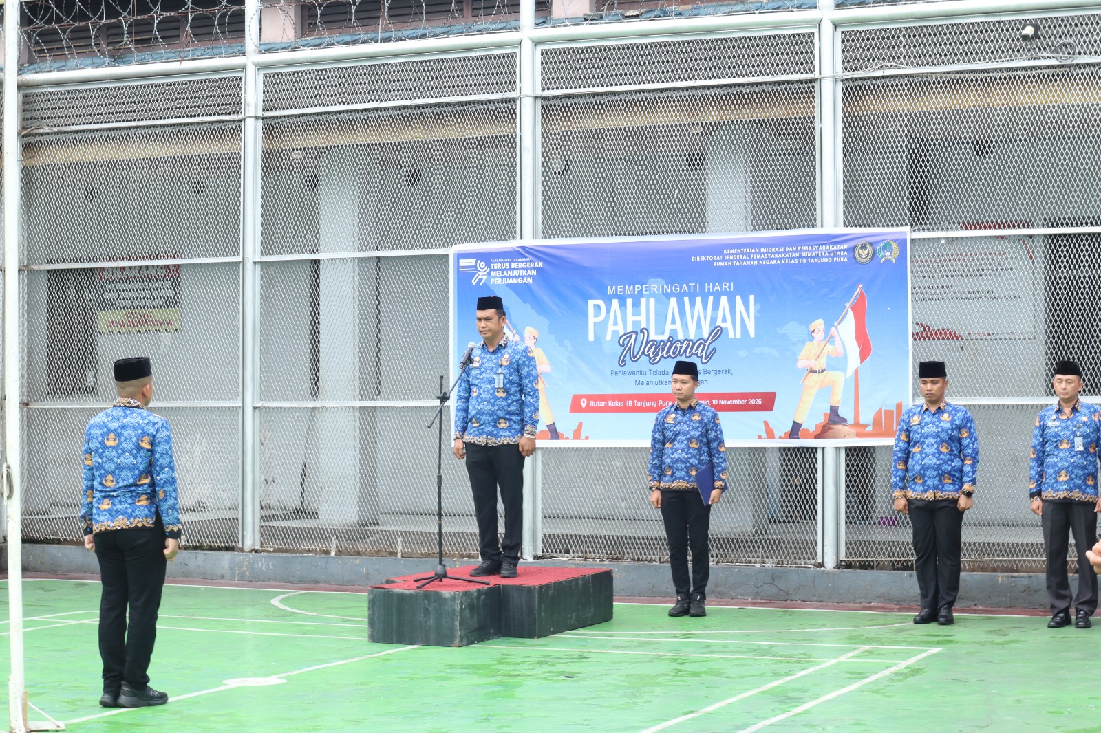 Tanjung Pura (MAWARTA) – Rumah Tahanan Negara (Rutan) Kelas IIB Tanjung Pura melaksanakan Upacara Peringatan Hari Pahlawan di Lapangan Utama Rutan, Senin (10/11).