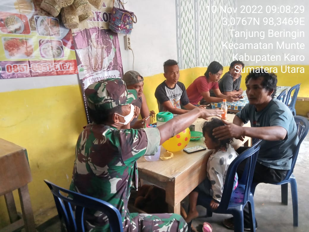 MAWARTANEWS.com, KARO – Keakraban kepada warga binaan merupakan tugas pokok Babinsa , Salah satunya yaitu dengan melakukan komunikasi sosial dalam menciptakan interaksi serta kekompakan antara Babinsa dan warga binaannya. Inilah yang dilakukan oleh Babinsa Sertu Alexander dalam menjalin keakraban dan Melaksanakan Komsos dengan Warga binaan di Desa Tanjung Beringin Kecamatan Munte Kabupaten Karo pada hari Kamis 10/11/2022 .