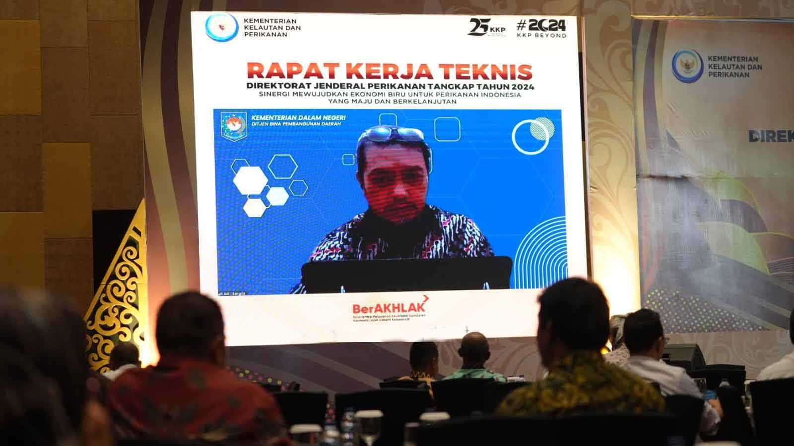 Kementerian Dalam Negeri, yang diwakili oleh Analis Kebijakan Ahli Muda pada Subdit Kelautan dan Perikanan Ditjen Bina Pembangunan Daerah Achmad Gestiadi Pasaribu menyampaikan dalam paparannya bahwa diperlukan sinergi pemerintah pusat dan pemerintah daerah dalam transformasi tata kelola perikanan nasional dalam rangka mendukung sasaran visi Indonesia Emas Tahun 2045 yaitu “Negara Nusantara Berdaulat, Maju, dan Berkelanjutan”.