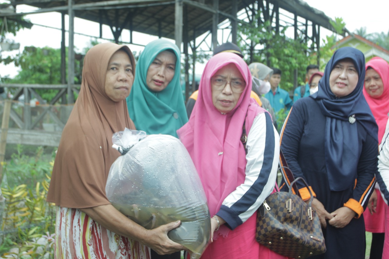 Kepala Dinas Perikanan Ir. Hazairin, MM, menyampaikan Penyerahan bibit dan pakan ini merupakan bantuan dari Dinas Peternakan sebagai bentuk dukungan kepada desa peserta lomba hatinya PKK dalam sektor ekonomi.
