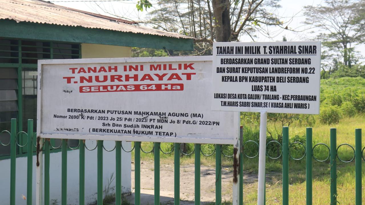SERGAI – Sebuah kontroversi panas mencuat di Kabupaten Serdang Bedagai, tepatnya di Desa Kota Galuh dan Tualang. T.Syahrial Sinar, mengklaim kepemilikan tanah seluas 74 hektar dengan memasang plang yang menyatakan tanah tersebut miliknya berdasarkan Grand Sultan dan Surat Keputusan (SK) Landreform No.22.
