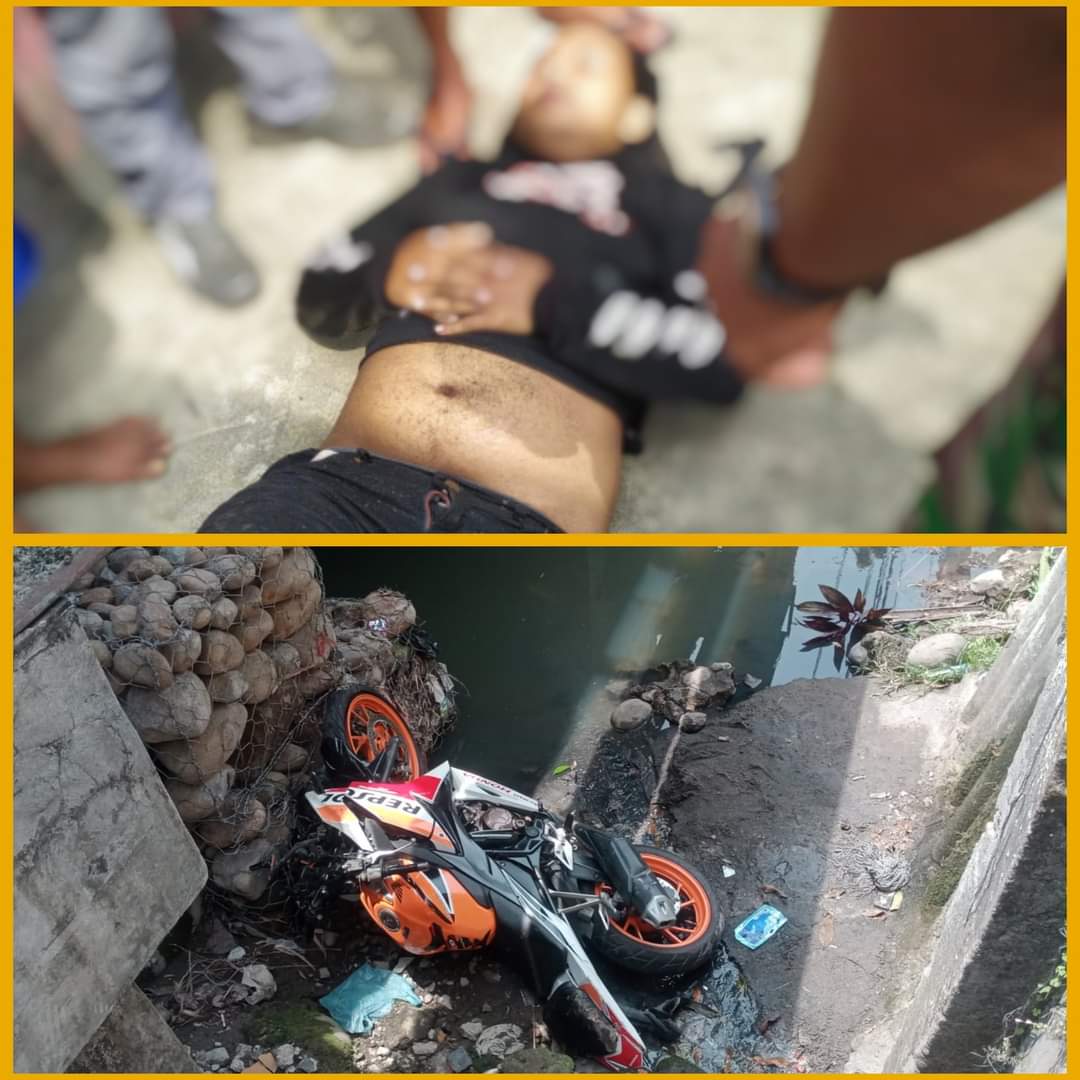 MAWARTANEWS.com, BINJAI – Akibat memaksakan diri mengemudi septor dalam keadaan mengantuk, seorang pria bersama sepeda motor nya terjun ke parit besar,