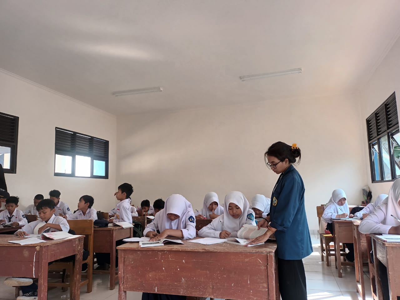 Mahasiswa Prodi Psikologi Ukrida melakukan kegiatan asistensi mengajar di SMPN 2 Cugenang
