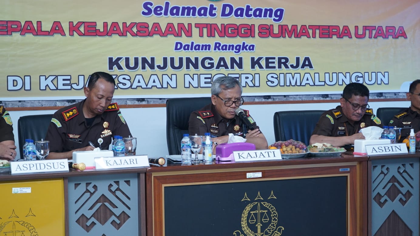Selanjutnya, Kajati Sumut dan para Asisten serta Kabag TU memberikan pengarahan di aula Kejari Simalungun yang diikuti seluruh pegawai dan jaksa di Kejari Simalungun.