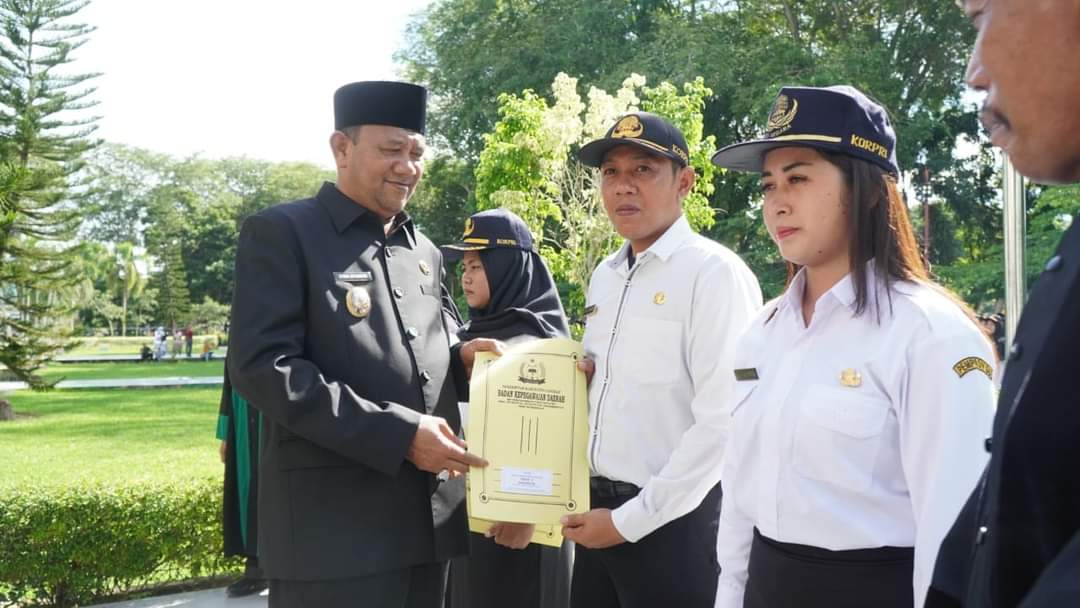 Plt Bupati Langkat H.Syah Afandin, SH menyerahkan Surat Keputusan Pengangkatan dan Pengambilan Sumpah Pegawai Pemerintah dengan Perjanjian Kerja (PPPK) Jabatan Fungsional Tenaga Guru dan Tenaga Teknis di Lingkungan Pemerintah Kabupaten Langkat, bertempat di Halaman Kantor Bupati, Kamis 20 Juli 2023.