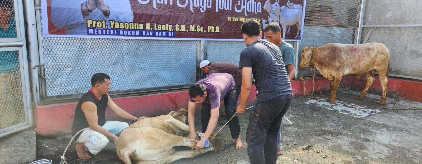 Suasana Khidmat dirasakan warga binaan Lapas Pancur Batu pada momen Hari Raya Idul Adha. Karena seusai Shalat Idul Adha, Lapas Kelas IIA Pancur Batu Kanwil Kemenkumham Sumut lakukan penyembelihan 3 hewan qurban seperti halnya yang dilakukan masyarakat luar.
