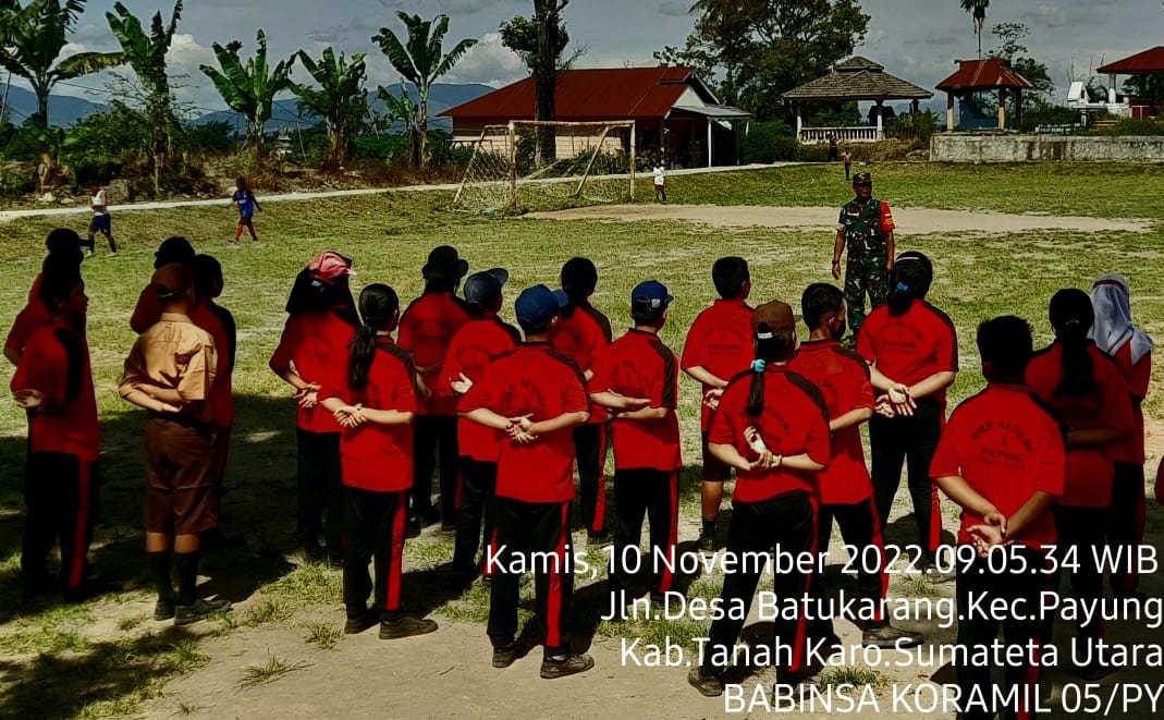 Hal ini dilakukan guna membentuk sikap, kedisplinan, kekompakan, loyalitas dan kepedulian, rasa persatuan dan rasa tanggung jawab sejak dini yang memberikan pelatihan dasar Peraturan Baris Berbaris di SMP N 1 Batukarang Kecamatan Payung Kabupaten Karo pada hari Kamis 10/11/2022 .