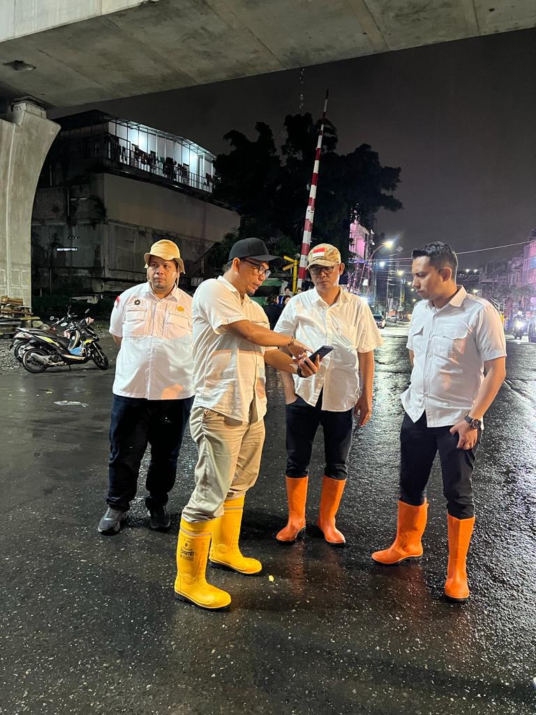 Camat Medan Kota Ian Andos langsung turut ke lokasi banjir bersama Kepala UPT Wilayah I Dinas PU untuk memantau agar penanganan berlangsung dengan cepat dan tepat. Guna memperlancar usaha, alat berat mesin penyedot air pun diturunkan untuk mempercepat air surut.