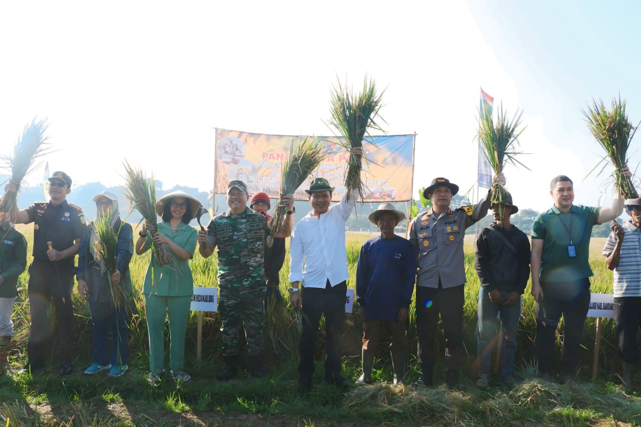 “Panen padi ini sebagai bentuk nyata dukungan terhadap program swasembada pangan nasional. Ini sebuah program strategis untuk menjaga ketahanan pangan dan kemandirian bangsa,” kata Bupati Dadang dalam keterangannya.