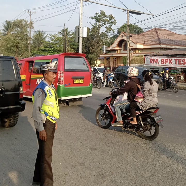 Terlihat anggota Polsek Medan Tuntungan membantu melancarkan arus Lalu lintas di Jalan Jamin Ginting Simpang Selayang, Simpang Simalingkar dan Jalan Flamboyan Raya Simpang Sakura (Sp. Melati).