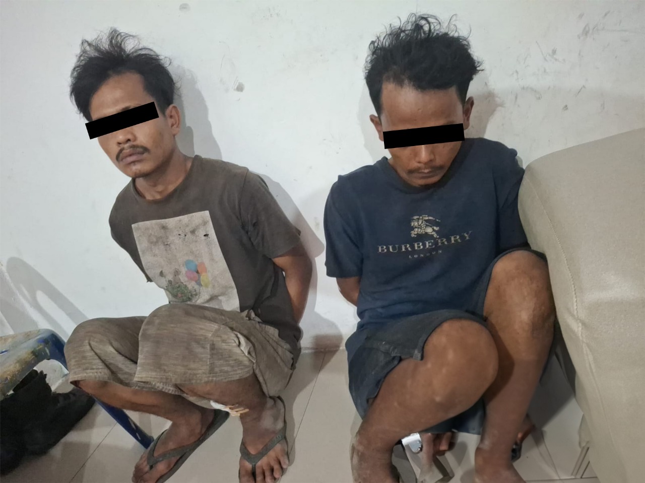 Sekitar pukul 23.00 WIB, terlihat 2 orang sedang mengambil besi menggunakan gergaji besi dan gunting seng. Petugas segera mengamankan kedua pelaku di lokasi.