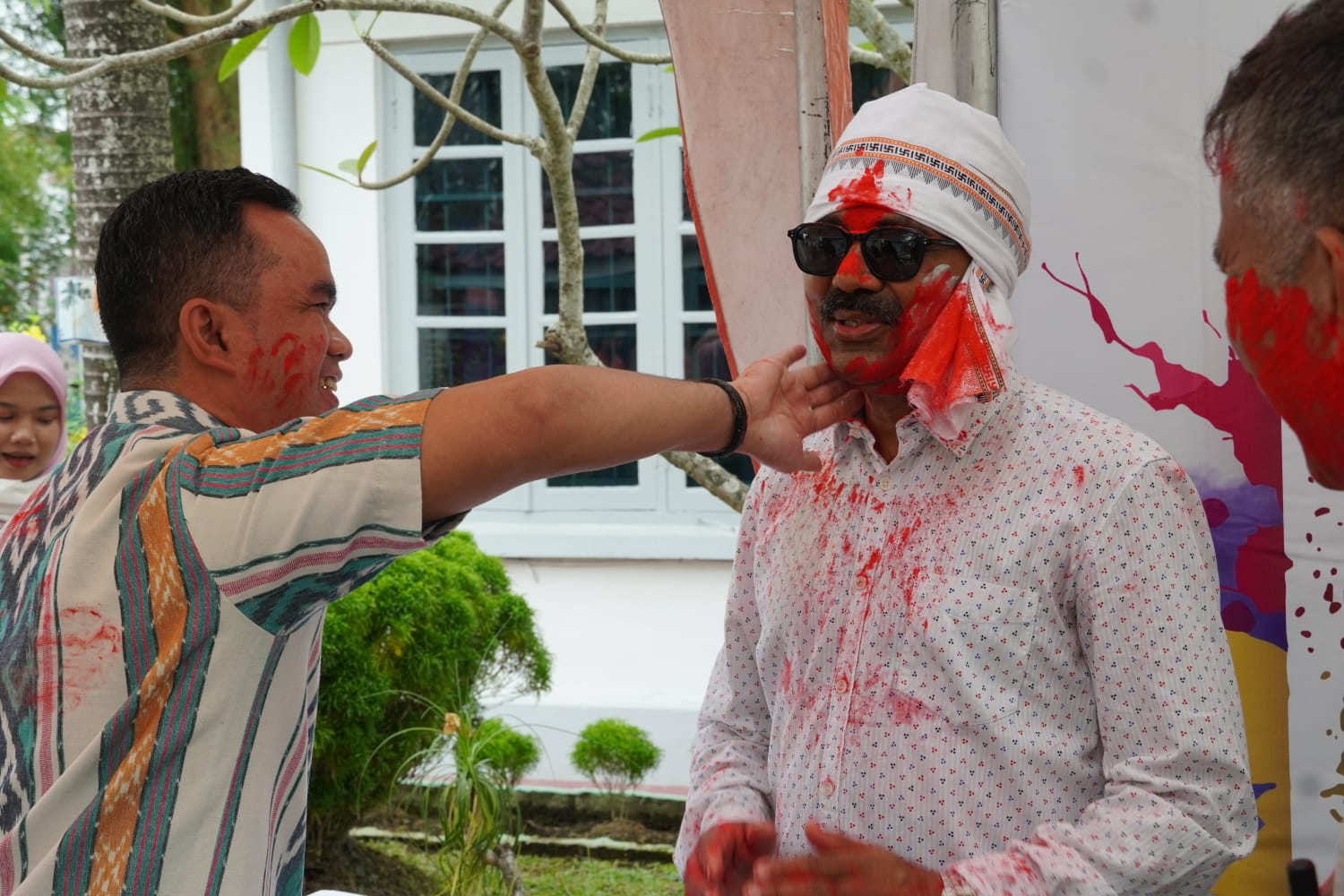 Sebelumnya saat tiba di kantor Konjen India, Kadis Pariwisata yang disambut oleh Konjen India di Medan, Ravi Shanker Goel saling mengolesi bubuk warna di wajah. Ini menjadi bagian dari perayaan festival Holi.