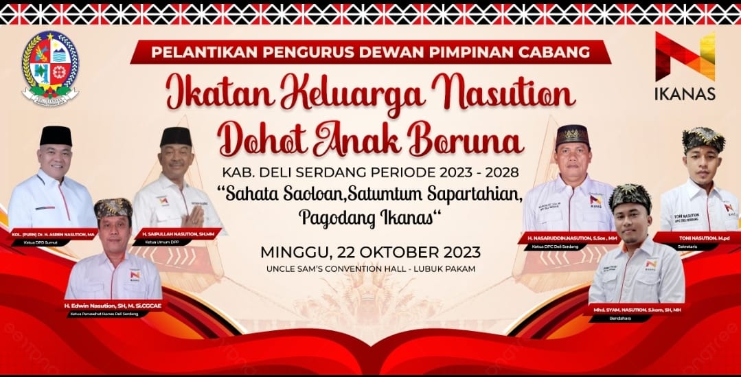 “Kami sangat berharap bahwa pelantikan Dewan Pengurus Daerah Ikatan Keluarga Nasution Dohot anak Boruna ini akan menjadi momentum penting dalam perjalanan kami sebagai keluarga besar IKANAS Deli Serdang,” harapnya.