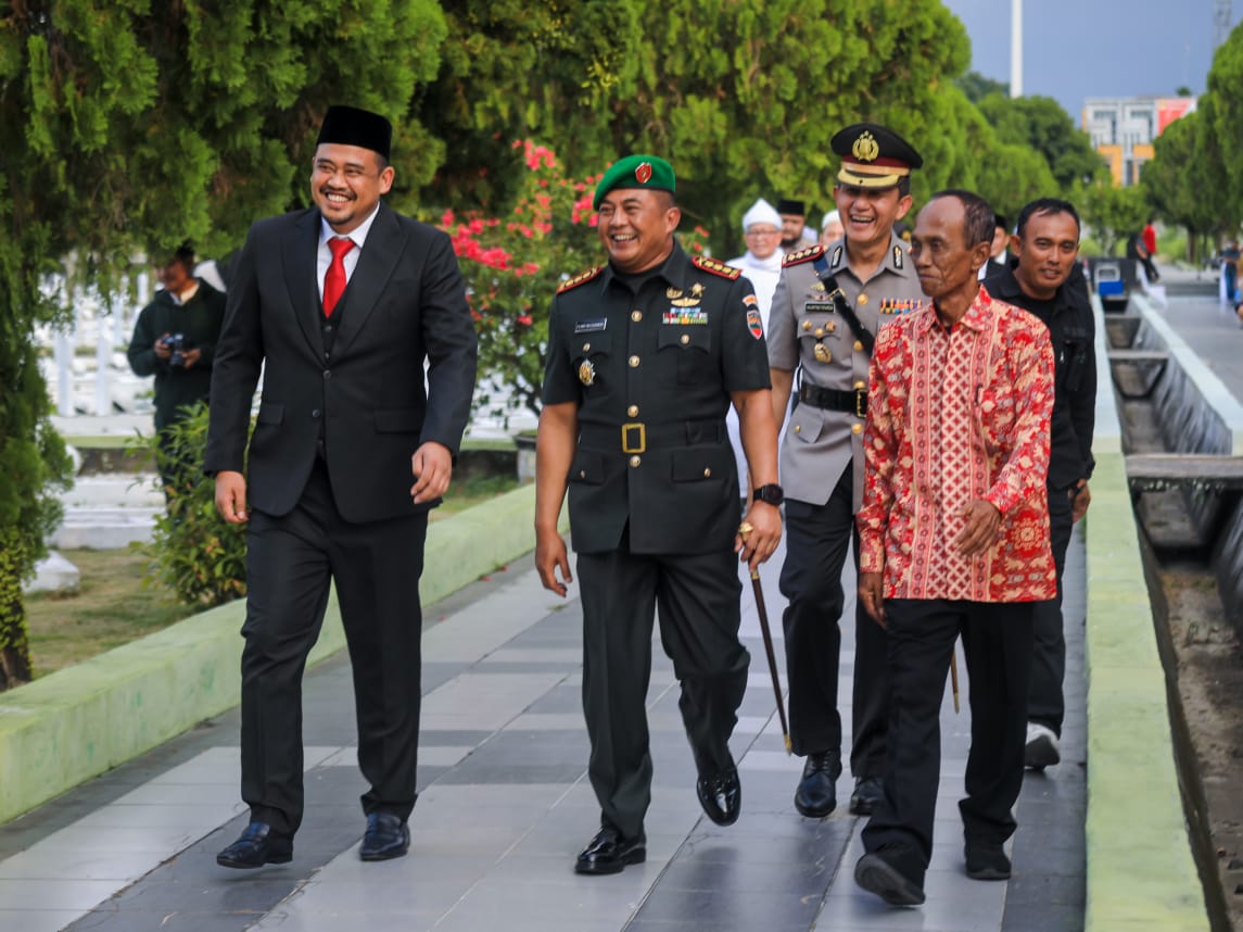 Hadir juga Ketua FKUB Kota Medan dan Tokoh Agama serta Pimpinan Perangkat Daerah melakukan tabur bunga ke makam pahlawan.
