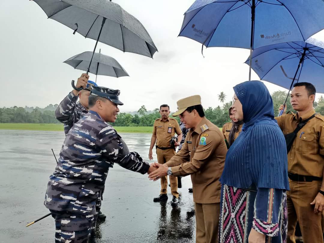 Penjabat Bupati Simeulue, Ahmadlyah, SH, bersama sejumlah unsur Forkopimda menyambut kedatangan Pangkoarmada I Laksamana Muda TNI Achmad Wibisono, S.E, CHRMP beserta Ibu Ny. Ita Achmad Wibisono, dan rombongan, Senin (29/1/2024) di Bandara Lasikin, Simeulue.