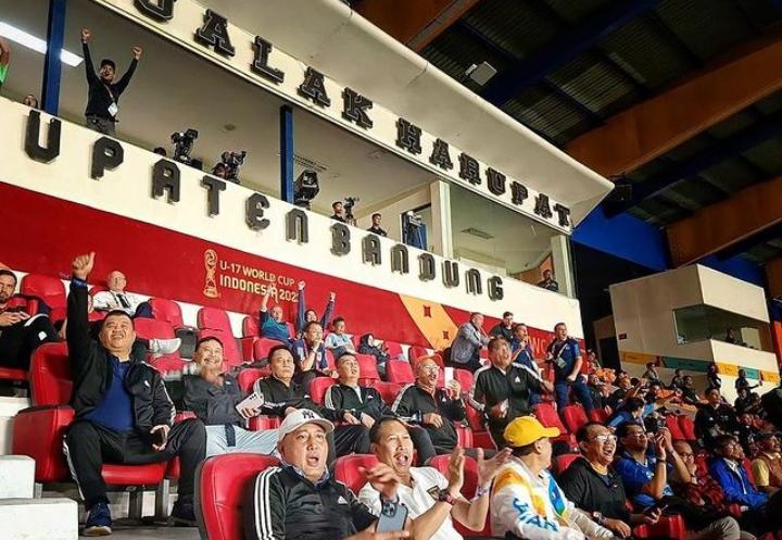 Penjabat (Pj) Gubernur Jawa Barat Bey Triadi Machmudin membagikan momen saat dirinya bersama dengan Pimpinan DPRD Jawa Barat nonton Piala Dunia U-17 di Stadion Si Jalak Harupat, Kabupaten Bandung.
